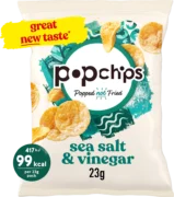 Dried Potato, Rice Flour, Sunflower Oil, Potato Starch, Sea Salt & Vinegar Flavour [Maltodextrin, Rice Flour, Natural Flavourings, Sugar, Acid: Citric Acid, Potassium Chloride, Salt, Sea Salt, Dried Yeast Extract, Antioxidant: Extracts of Rosemary], Salt.